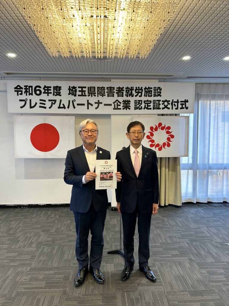 埼玉県障害者就労施設パートナー企業に認定されました。